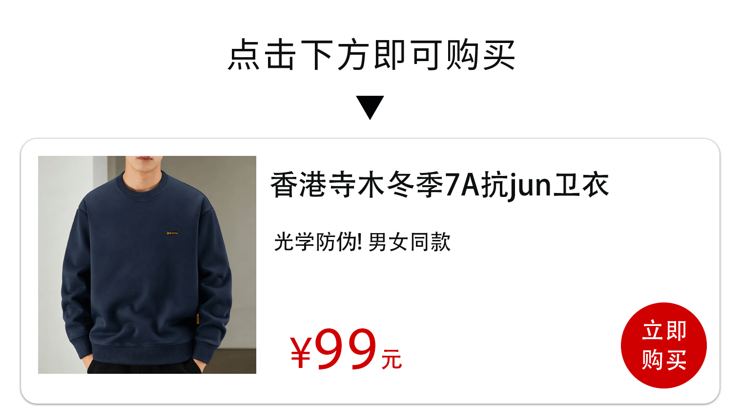 但这件卫衣的第一句卖点就极其嚣张:“虽是加绒款,上身却不拖沓臃肿,反而更挺阔有型。”