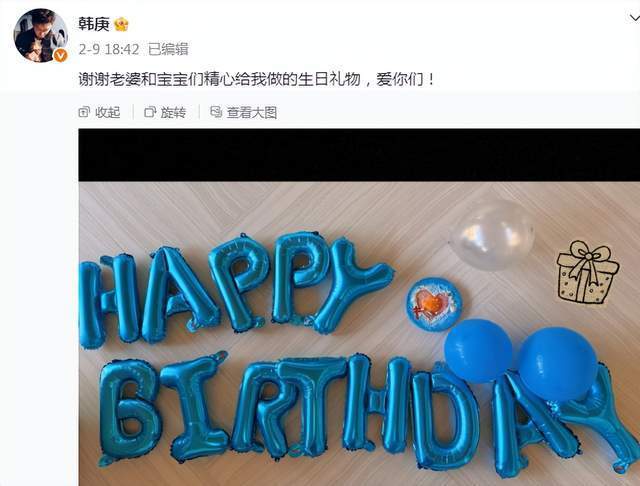 上个月迎来42岁生日的韩庚,他就在个人社交平台幸福分享出老婆卢靖姗和宝宝们精心给他做的生日礼物并表白他们写道:“爱你们”。
